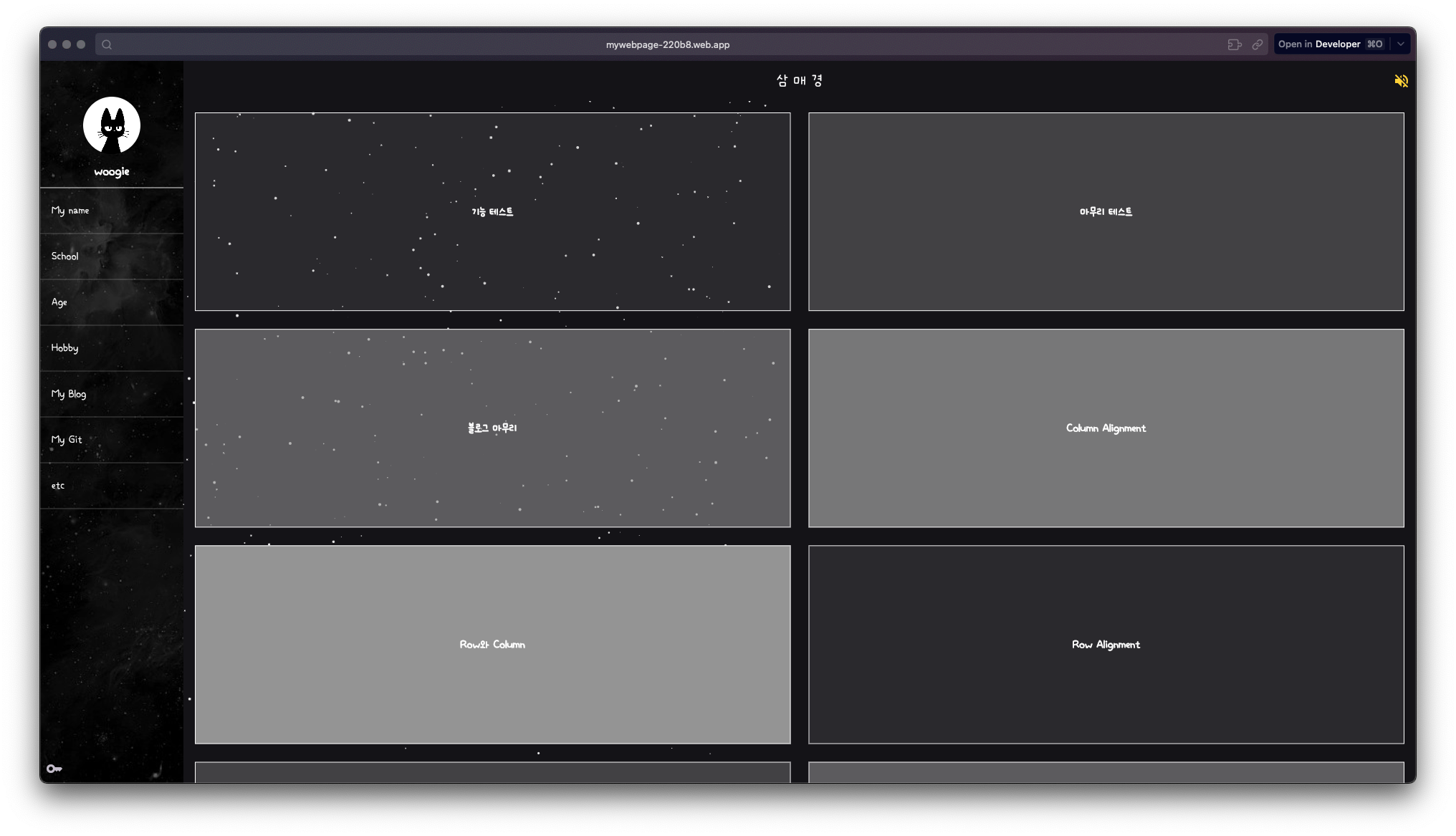 my_webpage mywebpage-220b8.web.app블로그  GitHub - ujo-orr/my_webpage: webPage pracwebPage prac. Contribute to ujo-orr/my_webpage development by creating an account on GitHub.github.comGitHub  [플러터 Flutter] web Blog 만들어보기 1Flutter web으로 나만의 블로그를 만들어 보았습니다.그 중에서도 옛날 감성인 커스텀 홈페이지를 만들어 보고 싶었기때문에..코드는 엉망 진창이지만..구현해보고 싶었던 기능들은 크게FireBase를ujo-orr.tistory.com전편으로부터 이어 작성합니다. FireBase를 통해 CRUD (사진, 동영상 포함)..