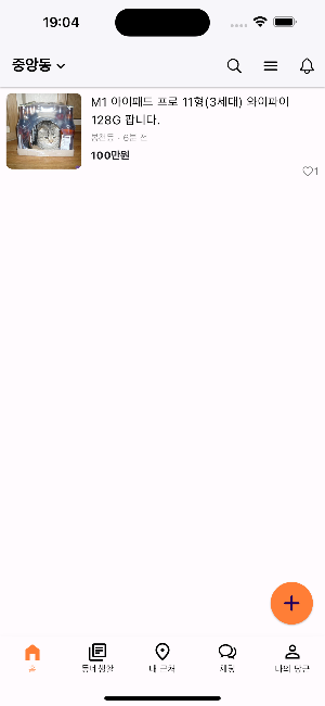 플러터 당근마켓 앱 카피코딩1 (appBar, body, floatingActionButton, bottomNavigationBar)